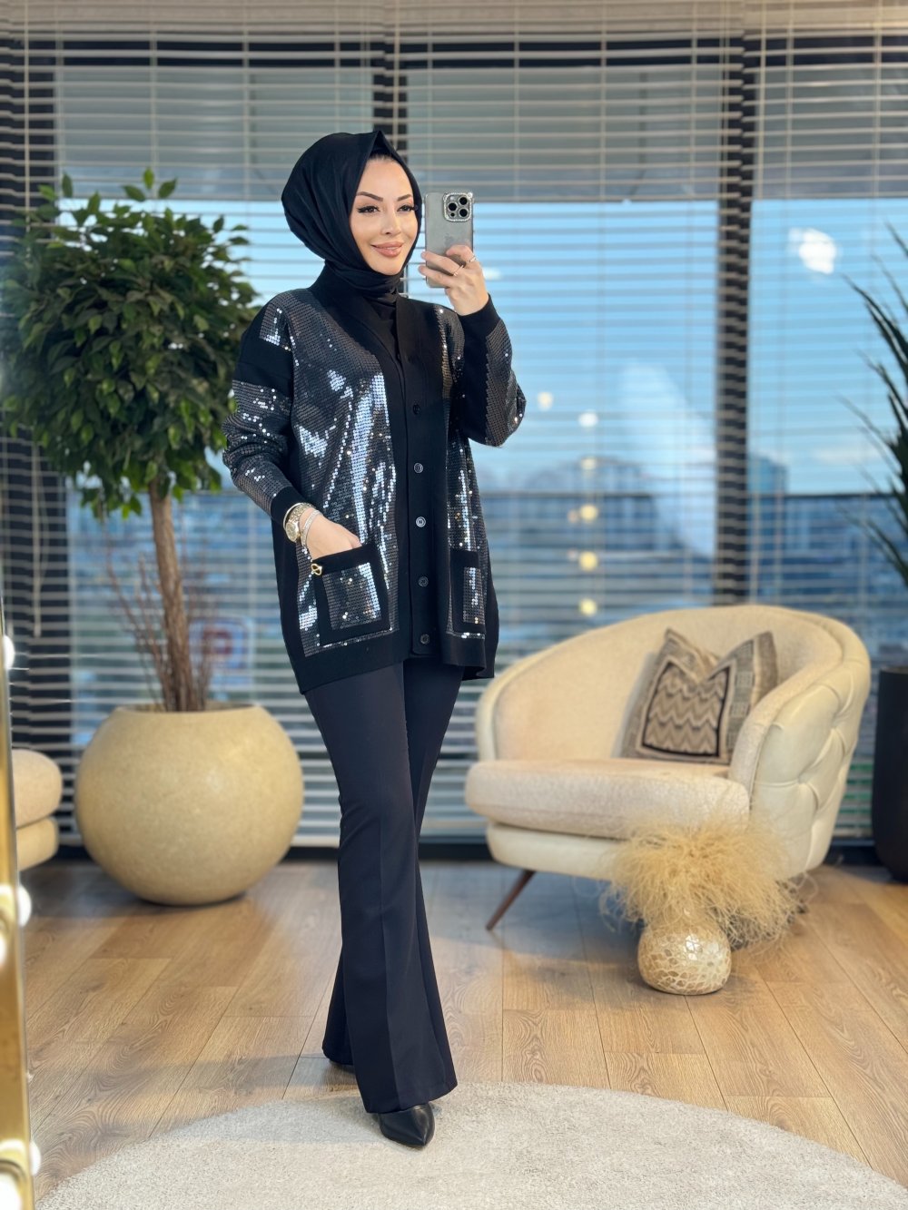 06H4589 Special Shiny Triko Hırka Siyah