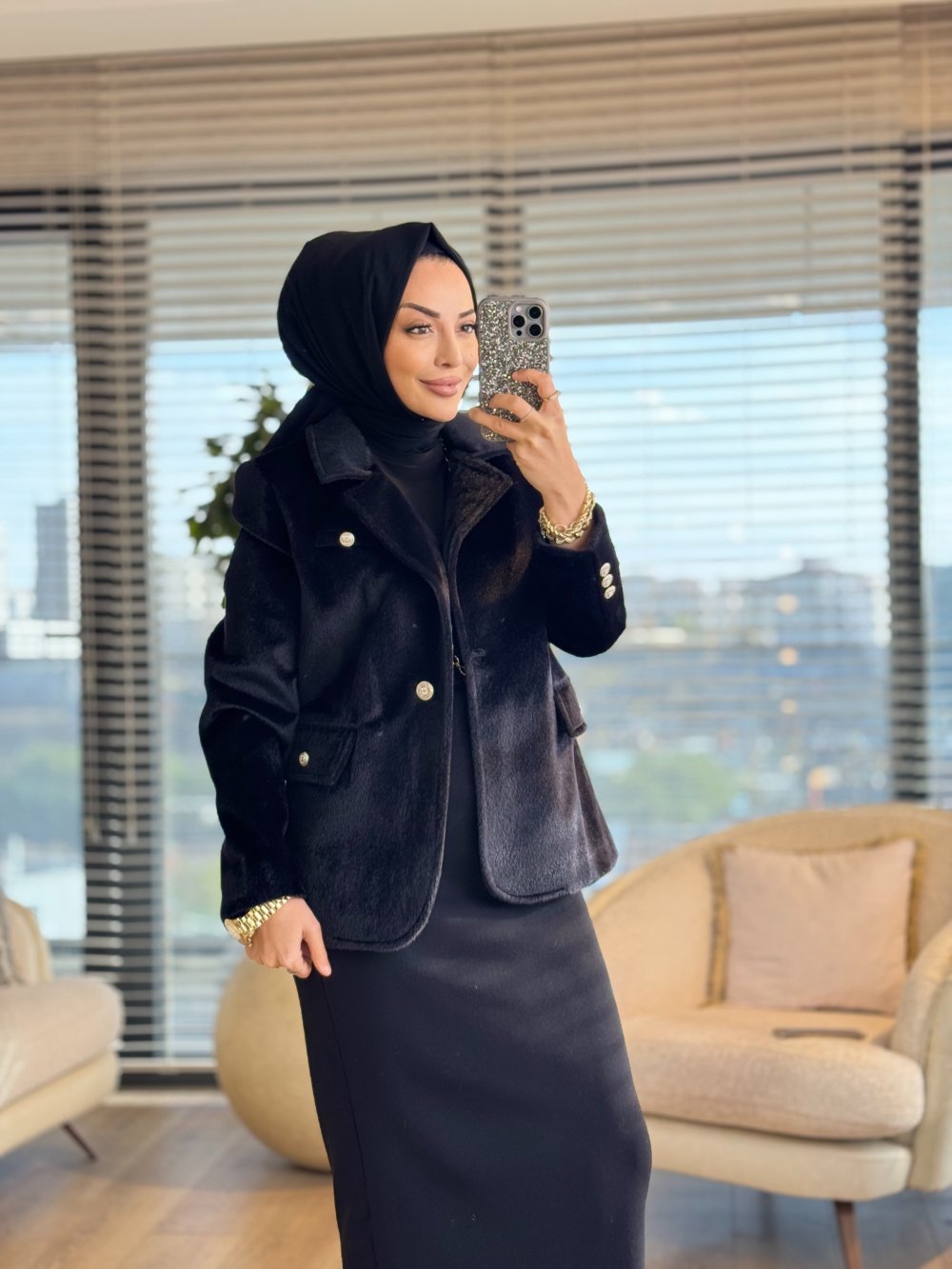 1005252 Tilki Tüylü Blazer Ceket Siyah