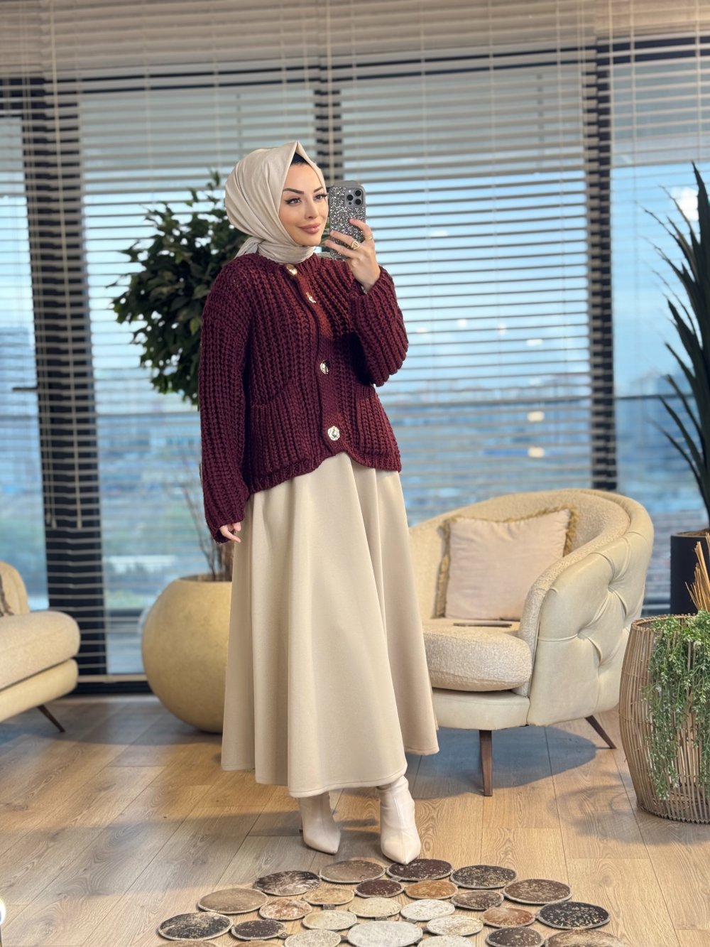 1005392 Metal Düğmeli Triko Hırka Bordo