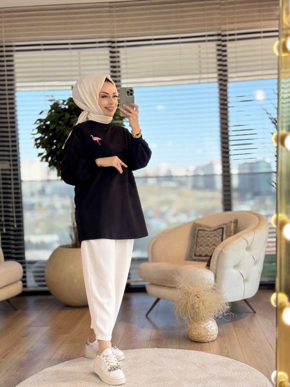 1384 Eteği Bantlı Yırtmaçlı Tunik Siyah