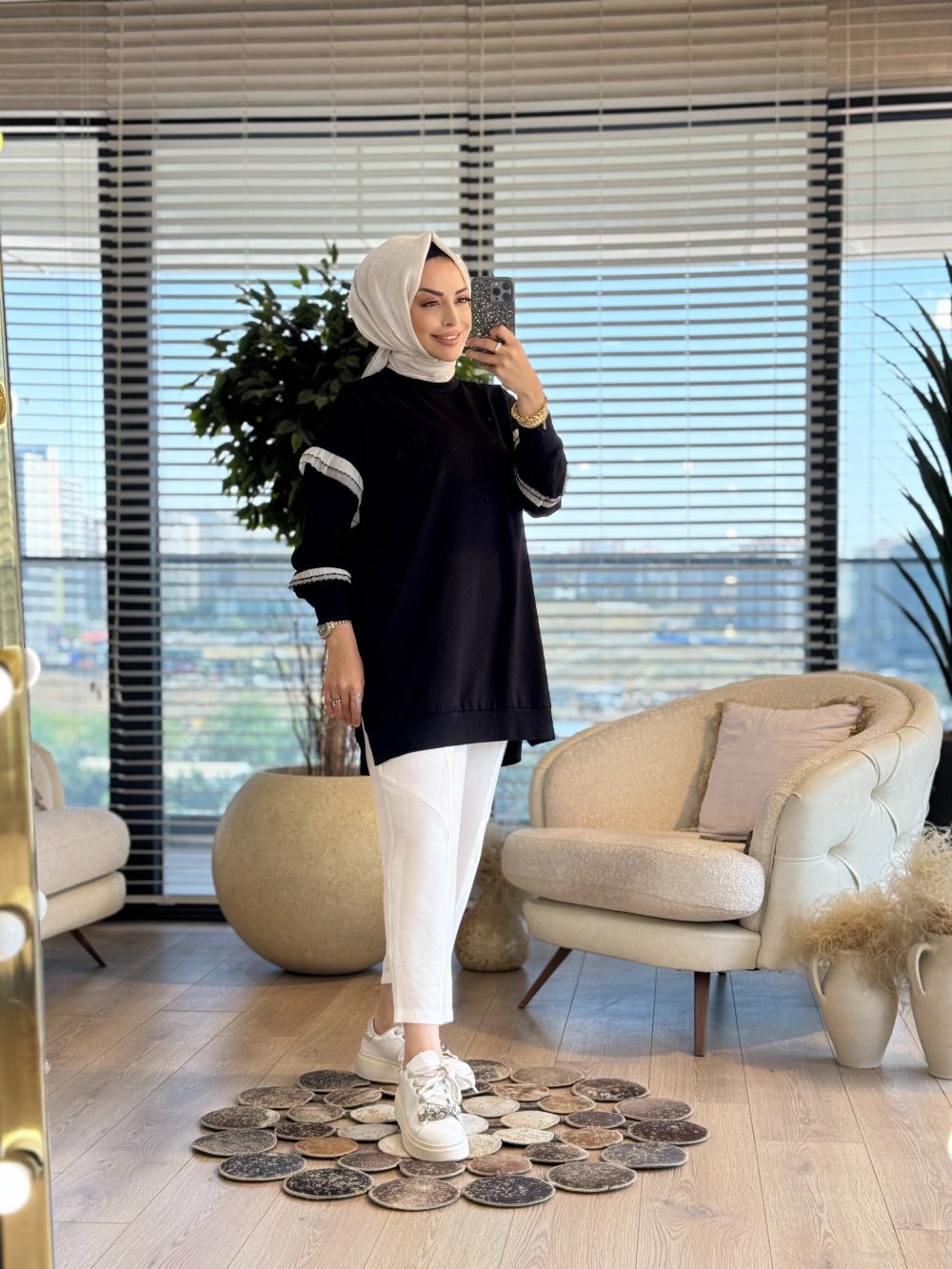 10718 Kolları Fırfır Detaylı Tunik Siyah