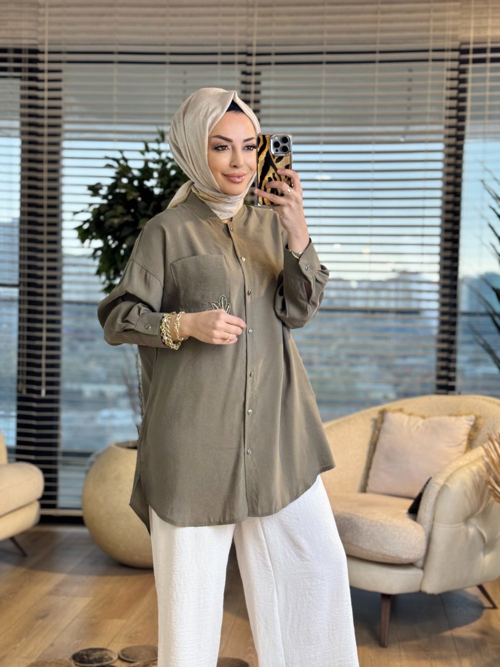 10763 Cep Üstü Broş İşli Gömlek Haki