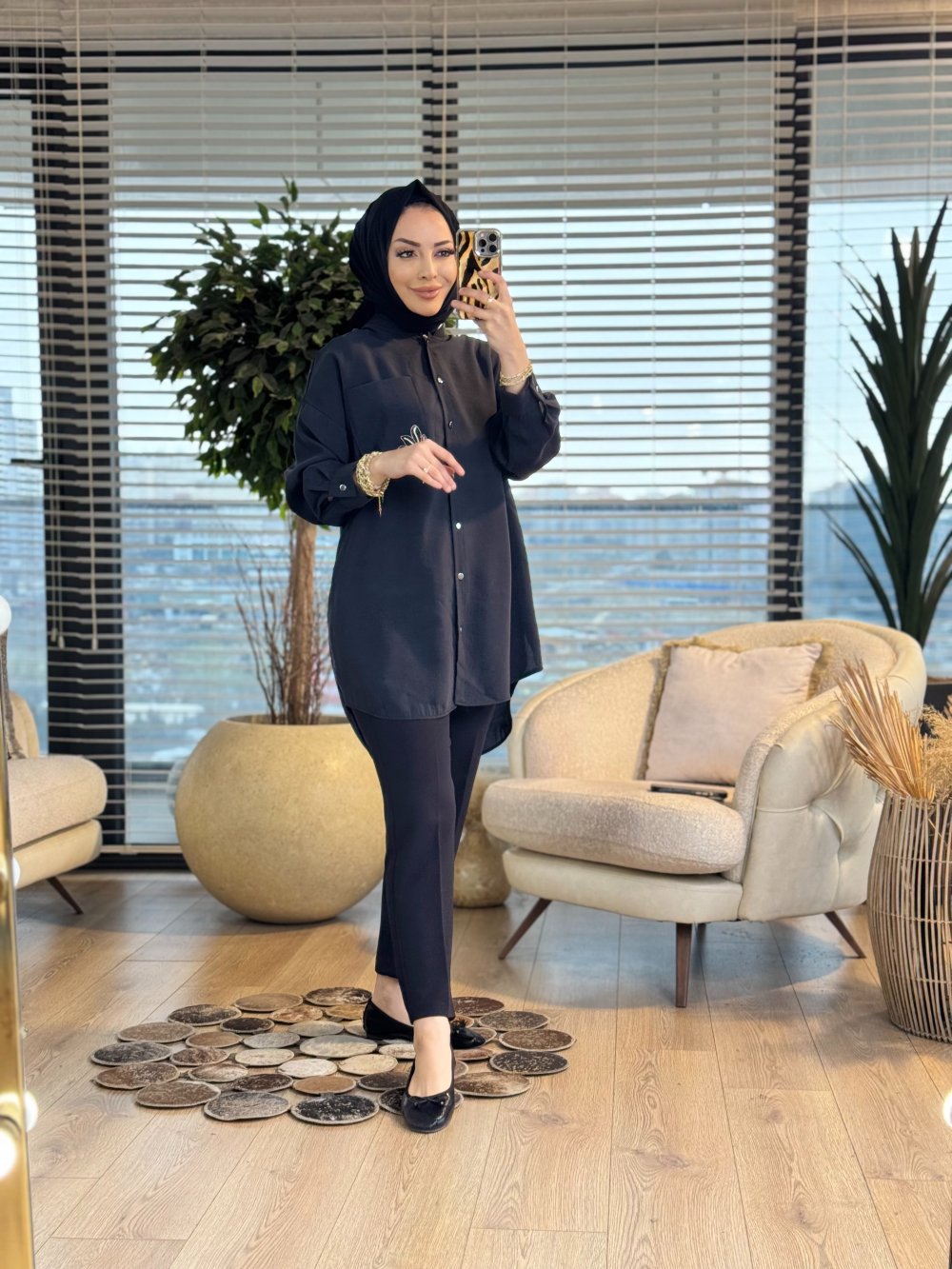 10763 Cep Üstü Broş İşli Gömlek Siyah