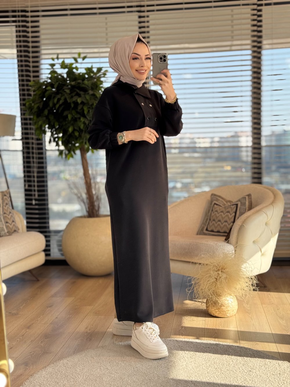 12593 Patı İki Sıra Çıtçıtlı Elbise Siyah