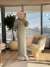 1412 Şifon Zikzak Desenli Patı Taşlı Elbise Yağ Yeşili