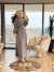 1412 Şifon Zikzak Desenli Patı Taşlı Elbise Yağ Yeşili