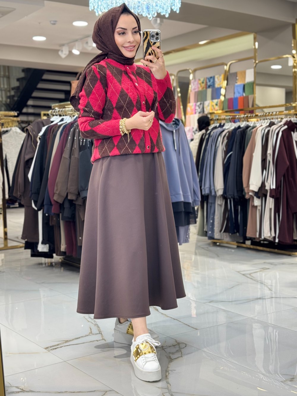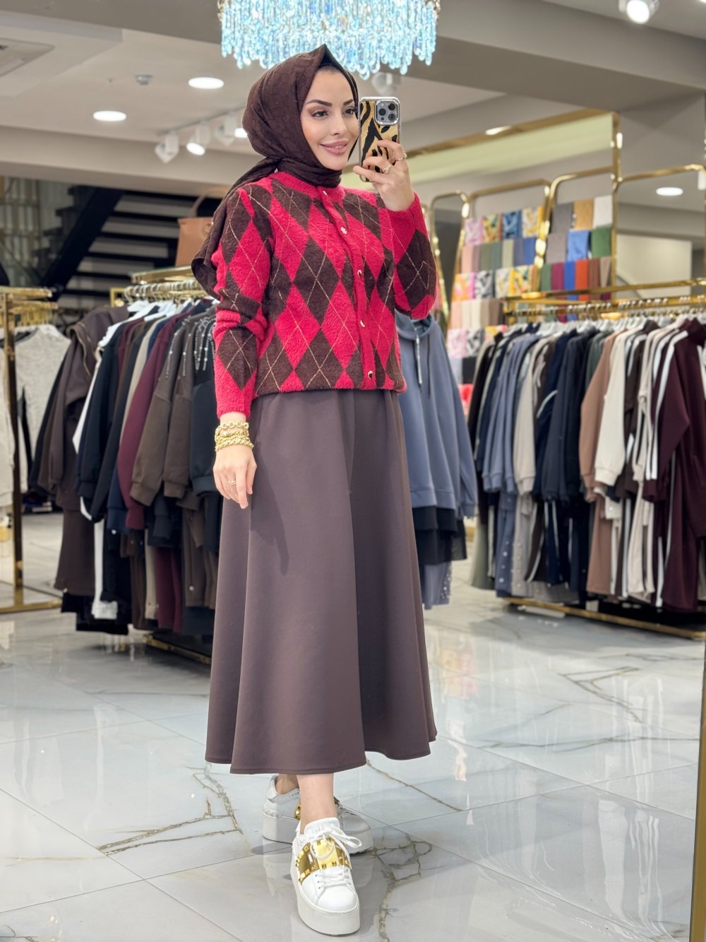 140509 Baklava Desen Kısa Hırka Kırmızı
