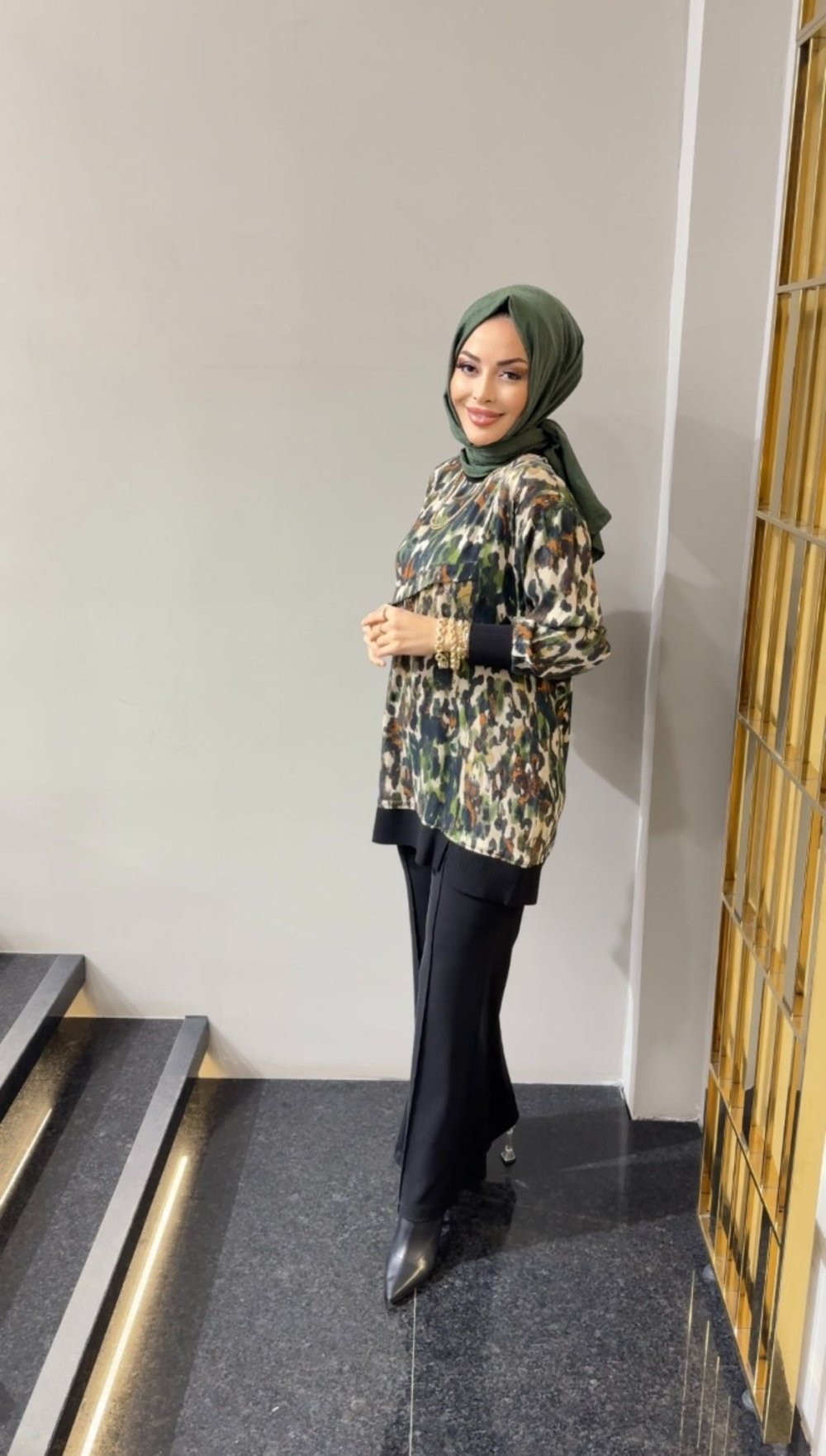 1418 Leopar Desen Tunik Bej Haki