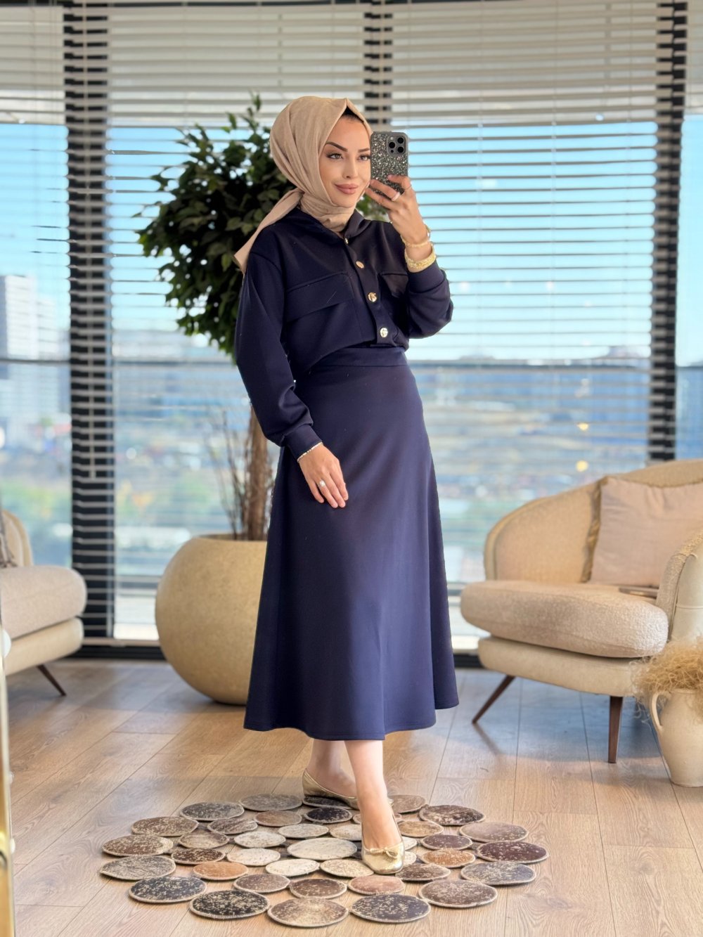 14377 Gold Çıtçıtlı Etekli Takım Lacivert
