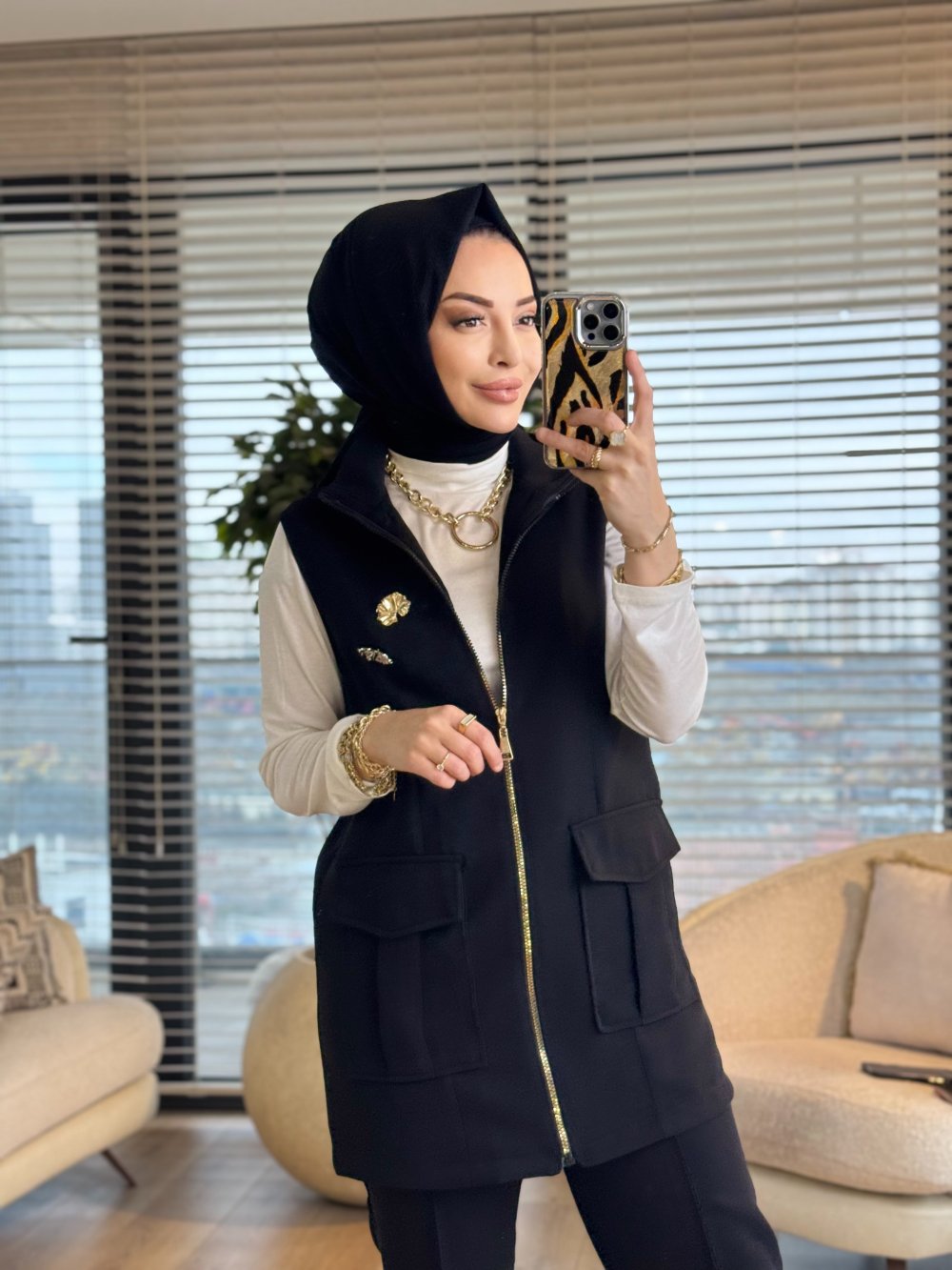 14463 Önü Cepli Ferm. Yelekli Takım Siyah