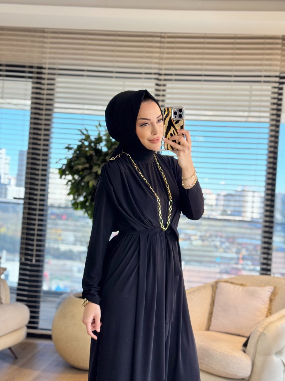 1513 Üstleri Üçgen Pelerinli Elbise Siyah