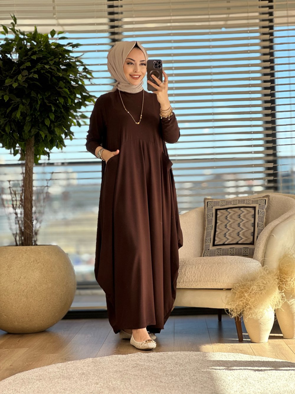 1686 Tuğçe Elbise Kahve