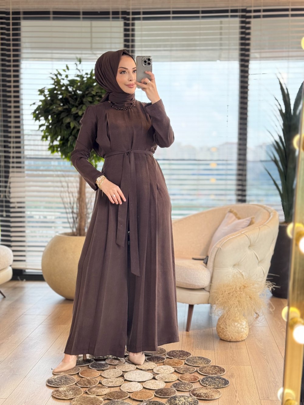 17-1016 Yakası Taş İşlemeli Tulum Kahve