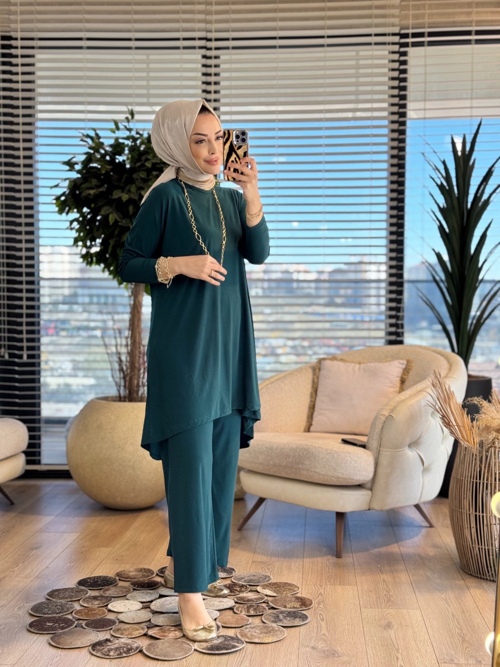 Tunik ön boy 87-89 cm, arka boy 100 cm, pantolon boy 101 cm