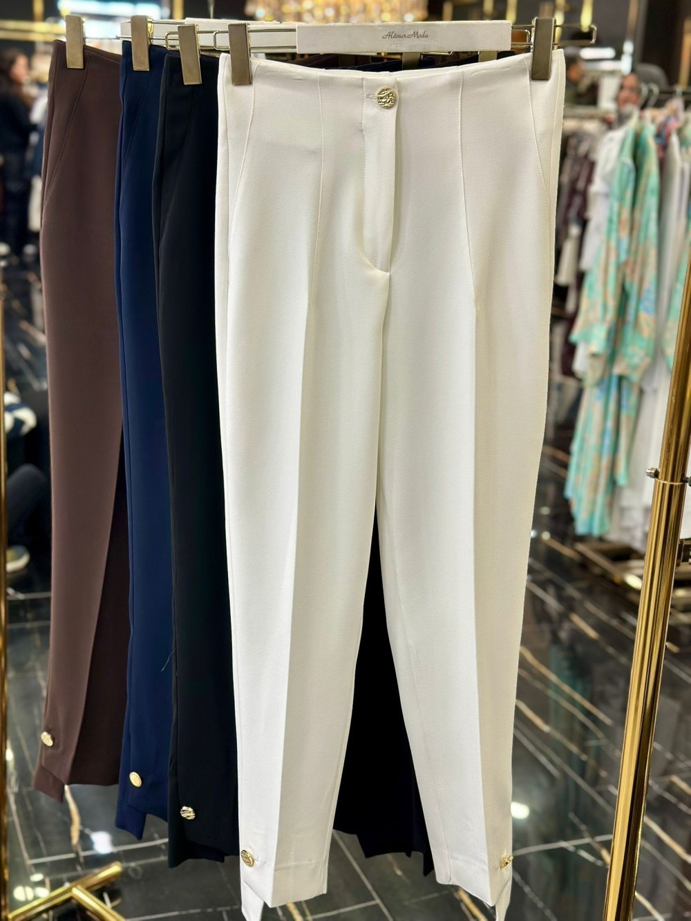 18277 Paçası Metal Düğmeli Pantolon Ekru