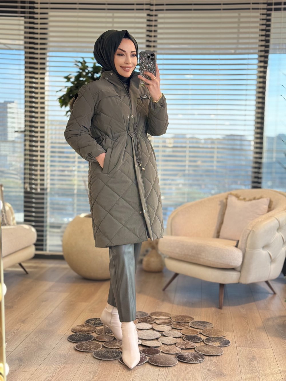 2024 Kapitone Kapş.Kürk Uzun Kaban Haki