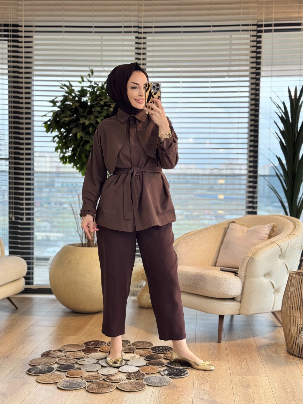 20759 Ön Parça Detaylı Gömlek Kahve