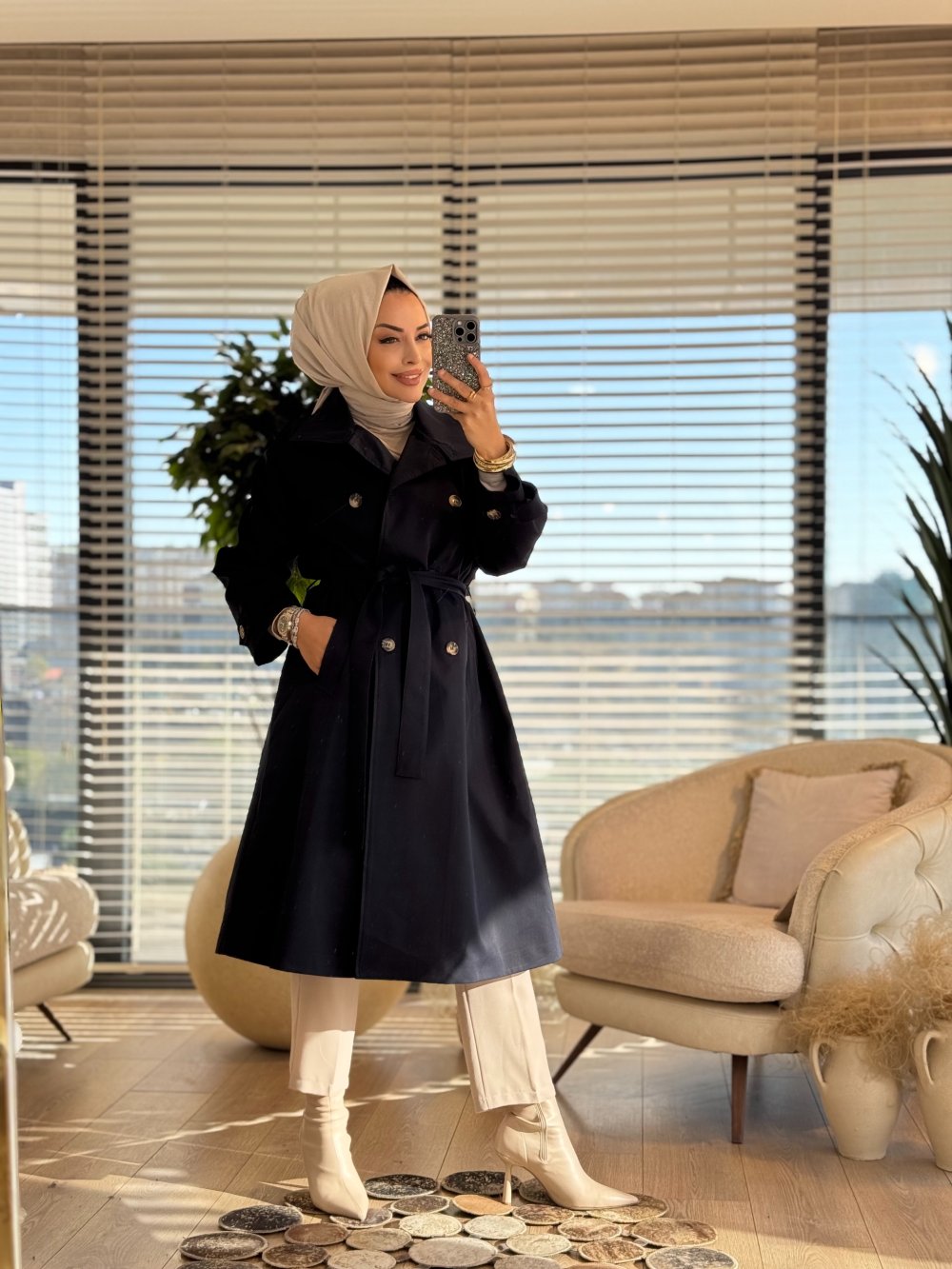 21152 Klasik Altı Düğmeli Trenç Lacivert