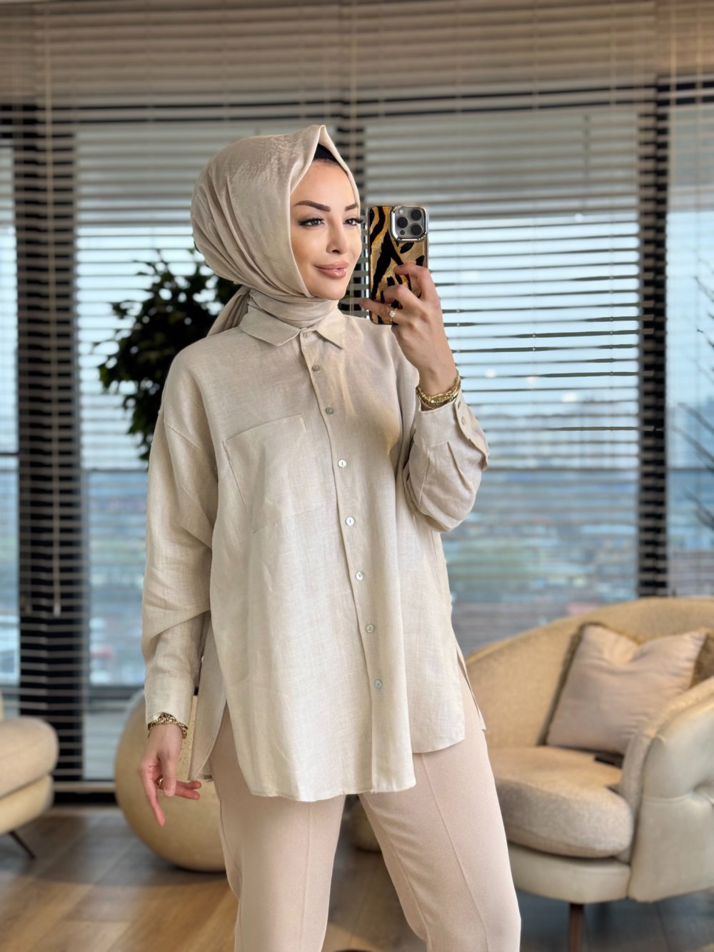 2126 Mess Keten Gömlek Bej