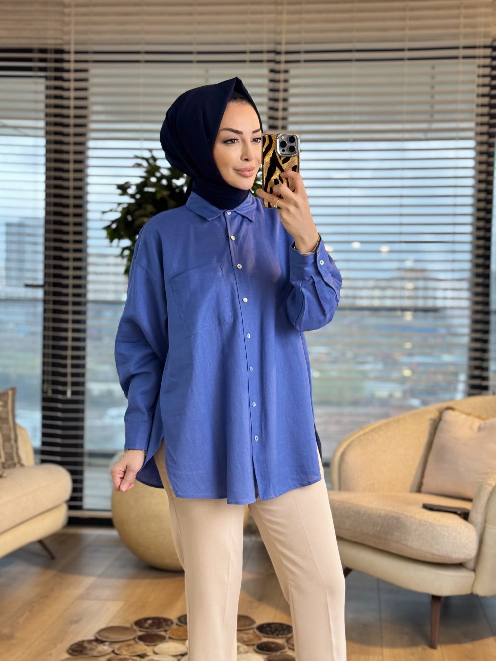 2126 Mess Keten Gömlek İndigo