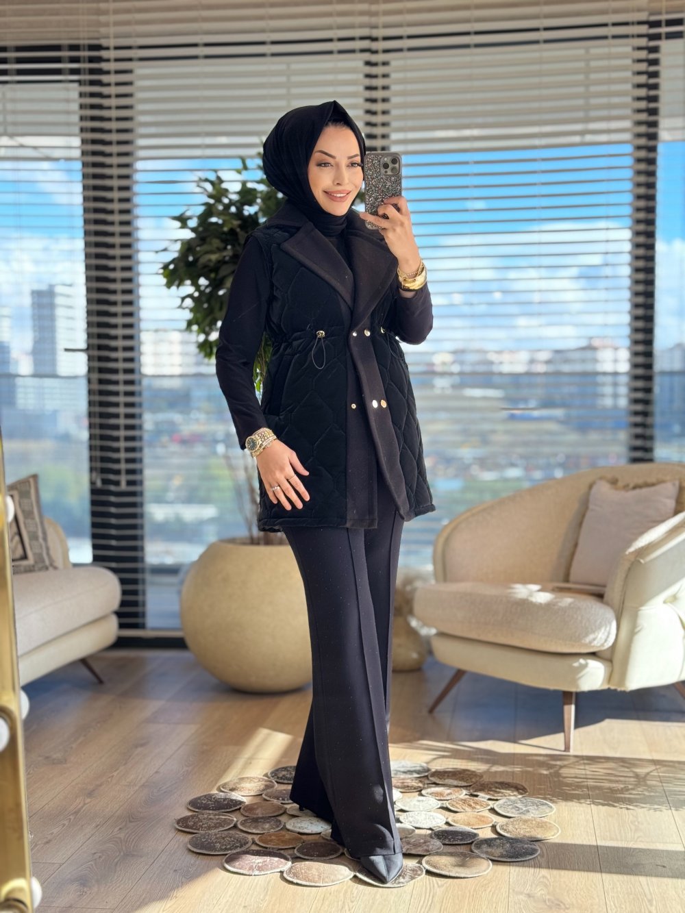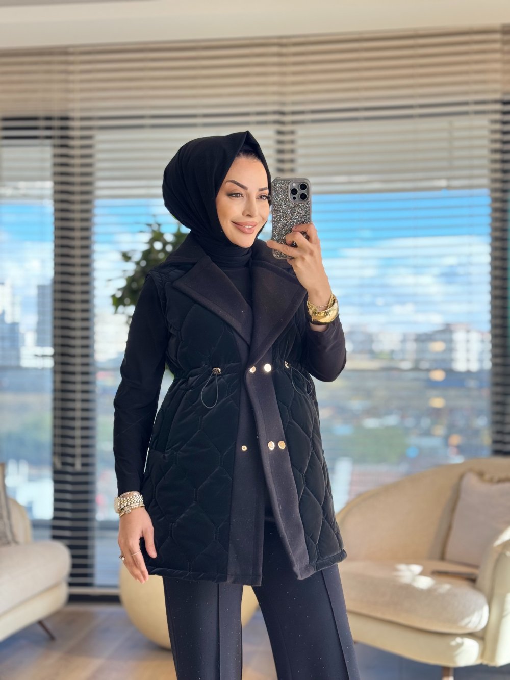 2190 Kapitone Kaşe Detaylı Yelek Siyah