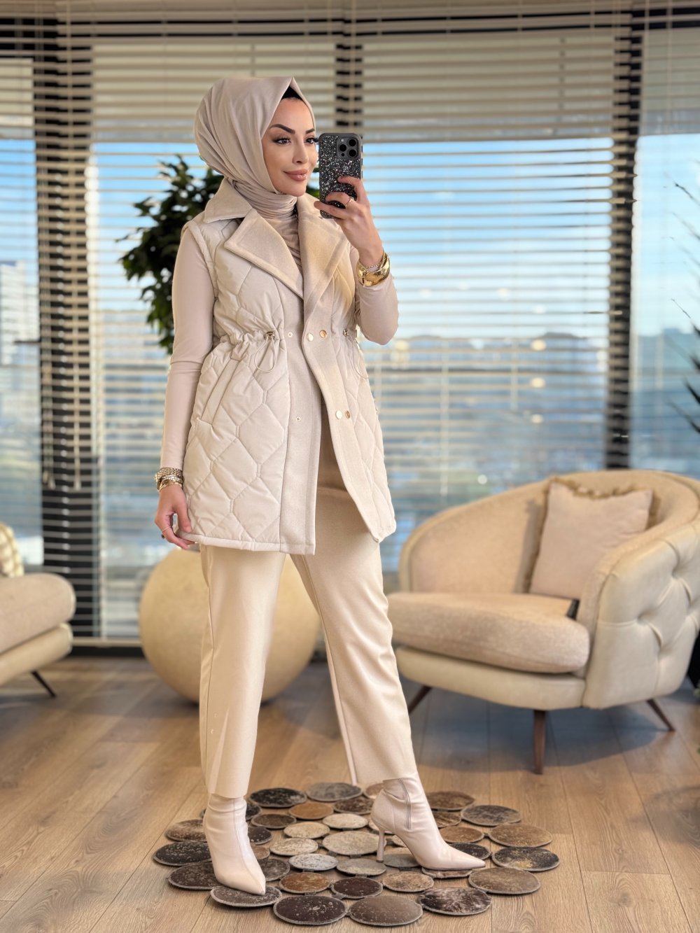 2190 Kapitone Kaşe Detaylı Yelek Taş