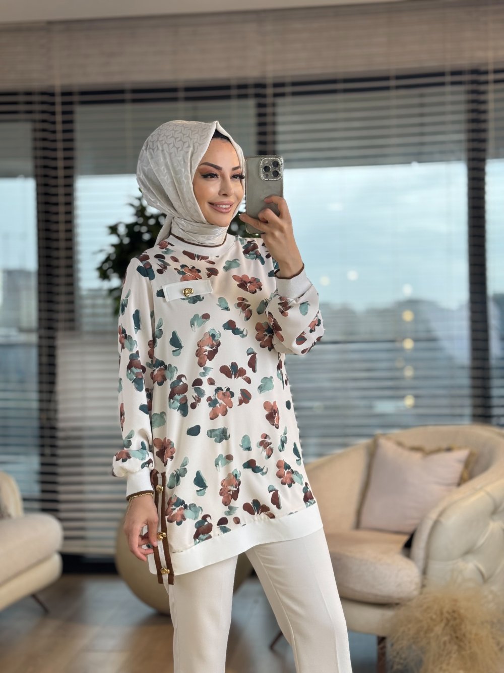 2231 Melis Tunik Ekru İndigo
