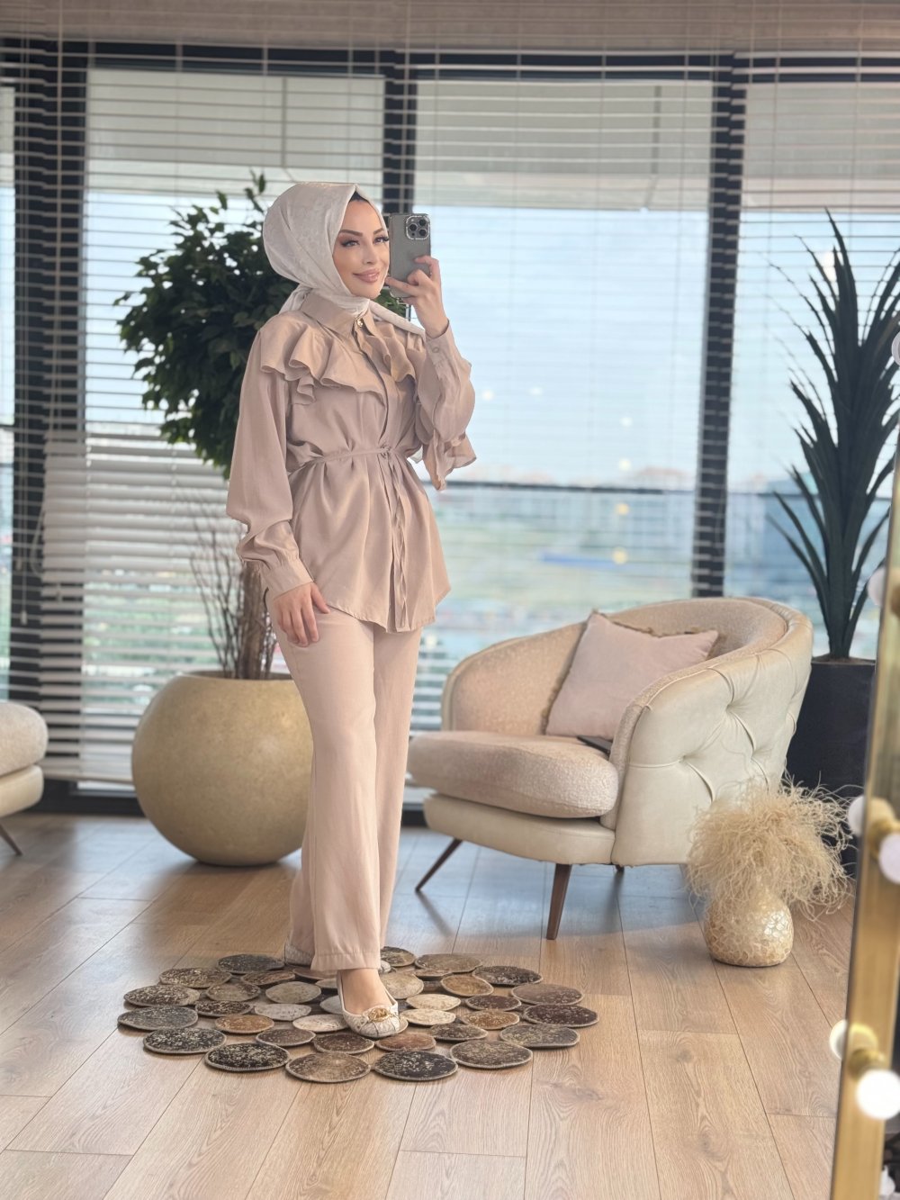 22722 Robası Fırfır Detaylı Takım Bej