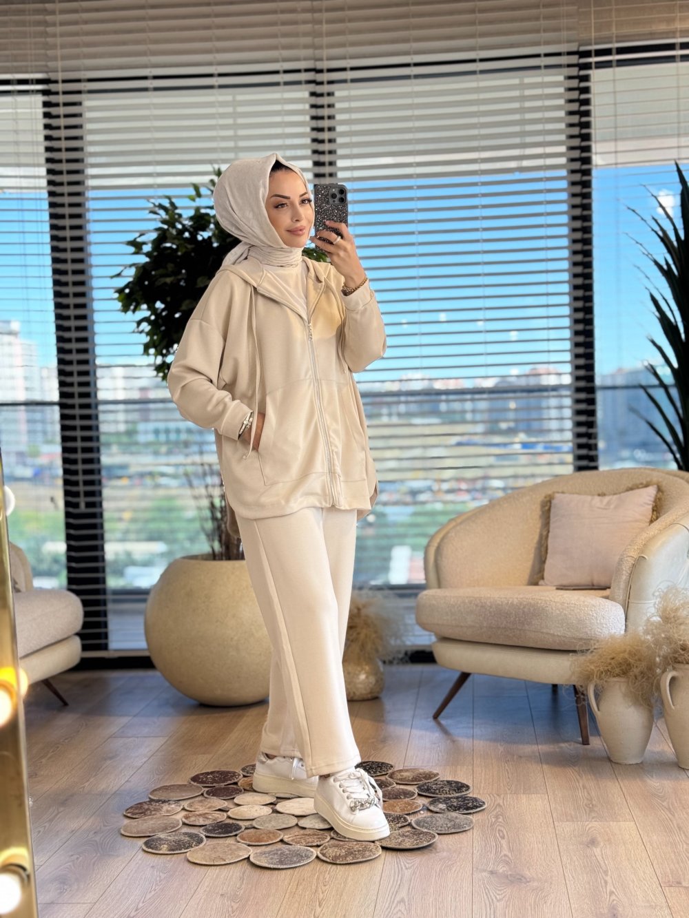 22742 Osyho Fermuarlı Kapşonlu Takım Bej