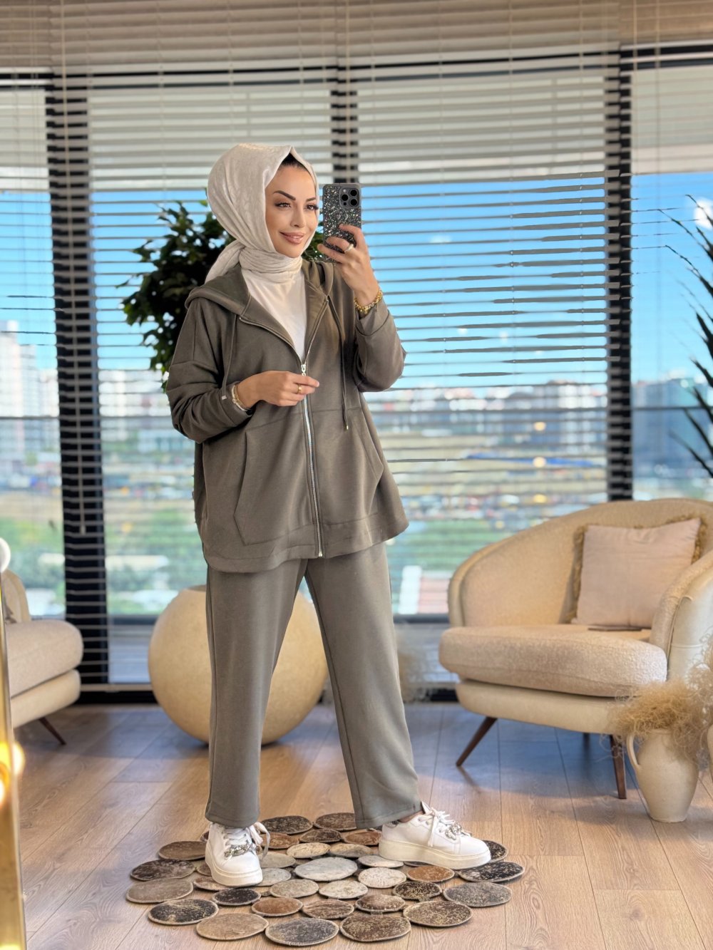 22742 Osyho Fermuarlı Kapşonlu Takım Haki