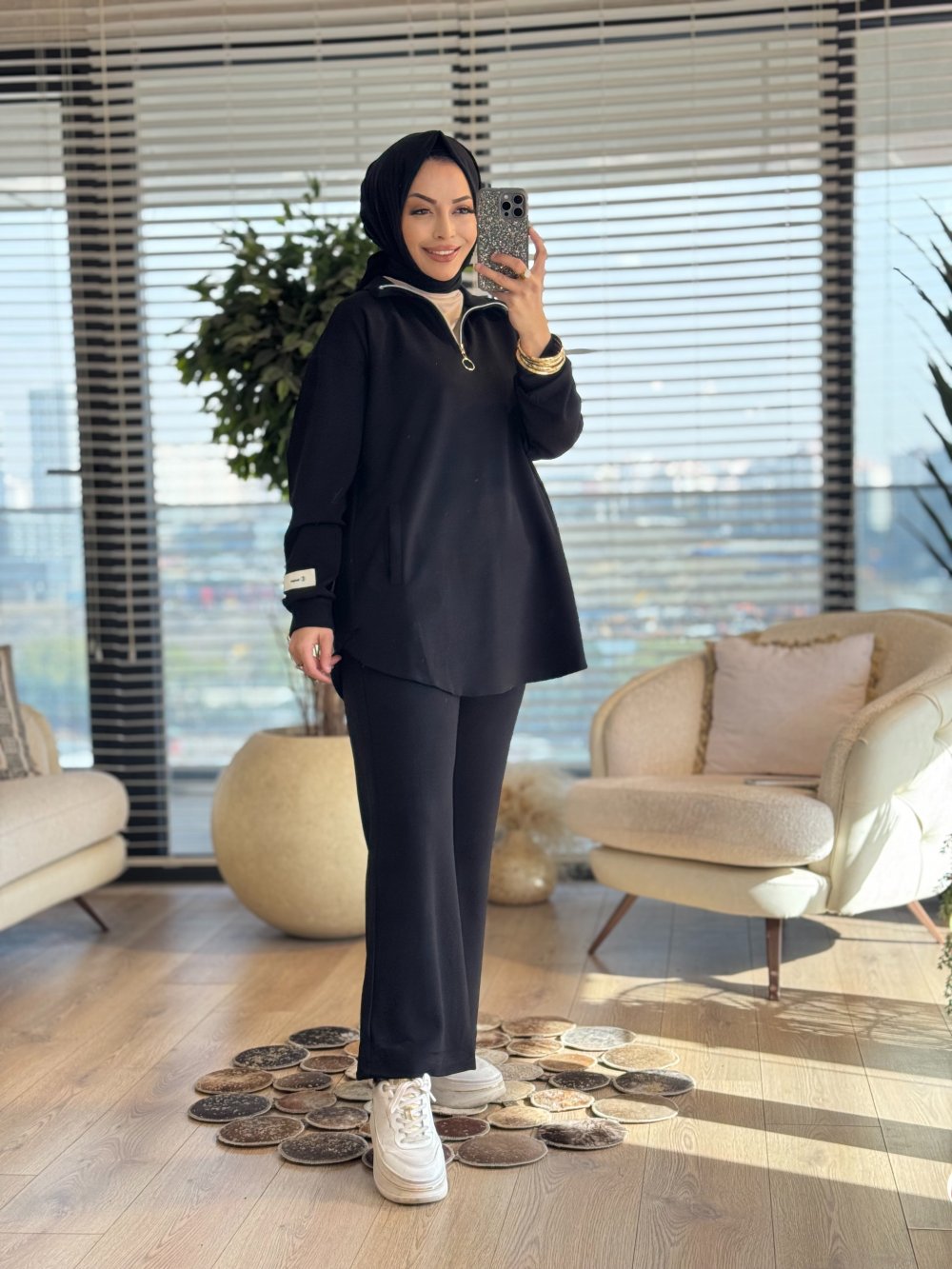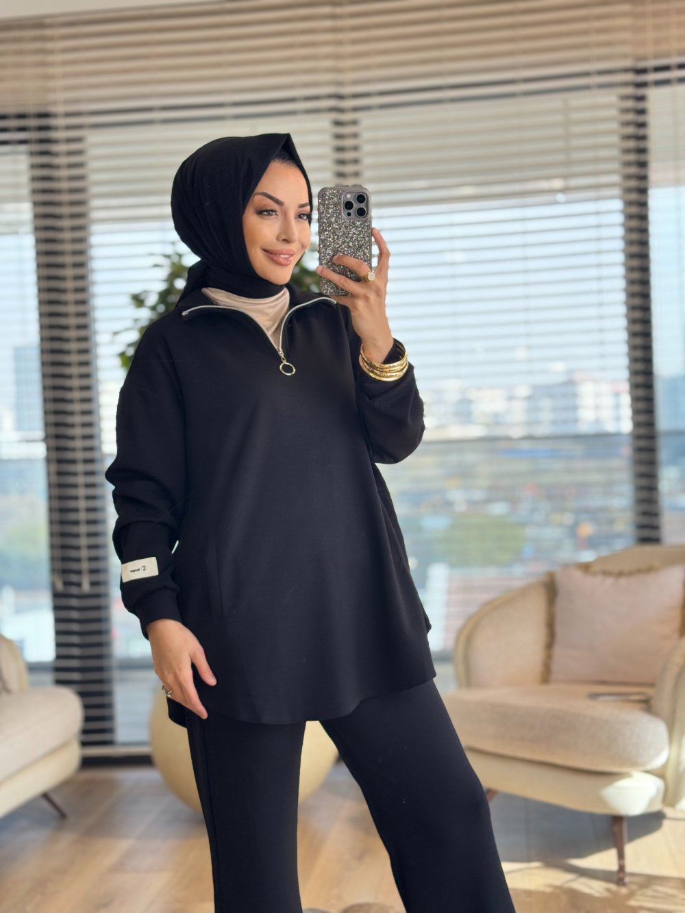 22745-1 Kolu Etiket Detaylı Takım Siyah