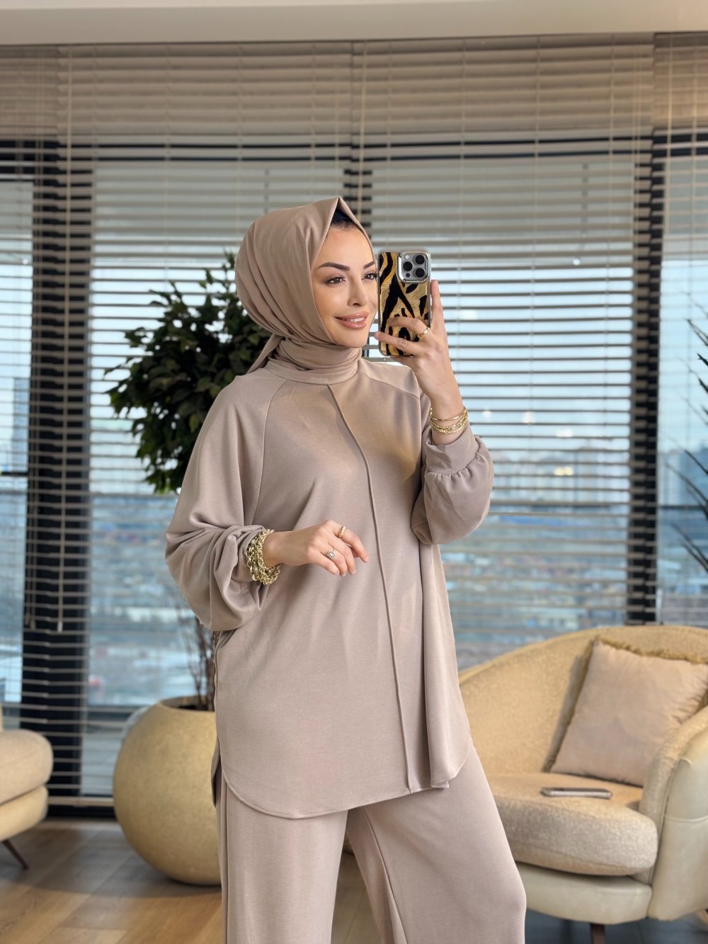 22831-5 Ön Boyuna Dikişli Takım Bej