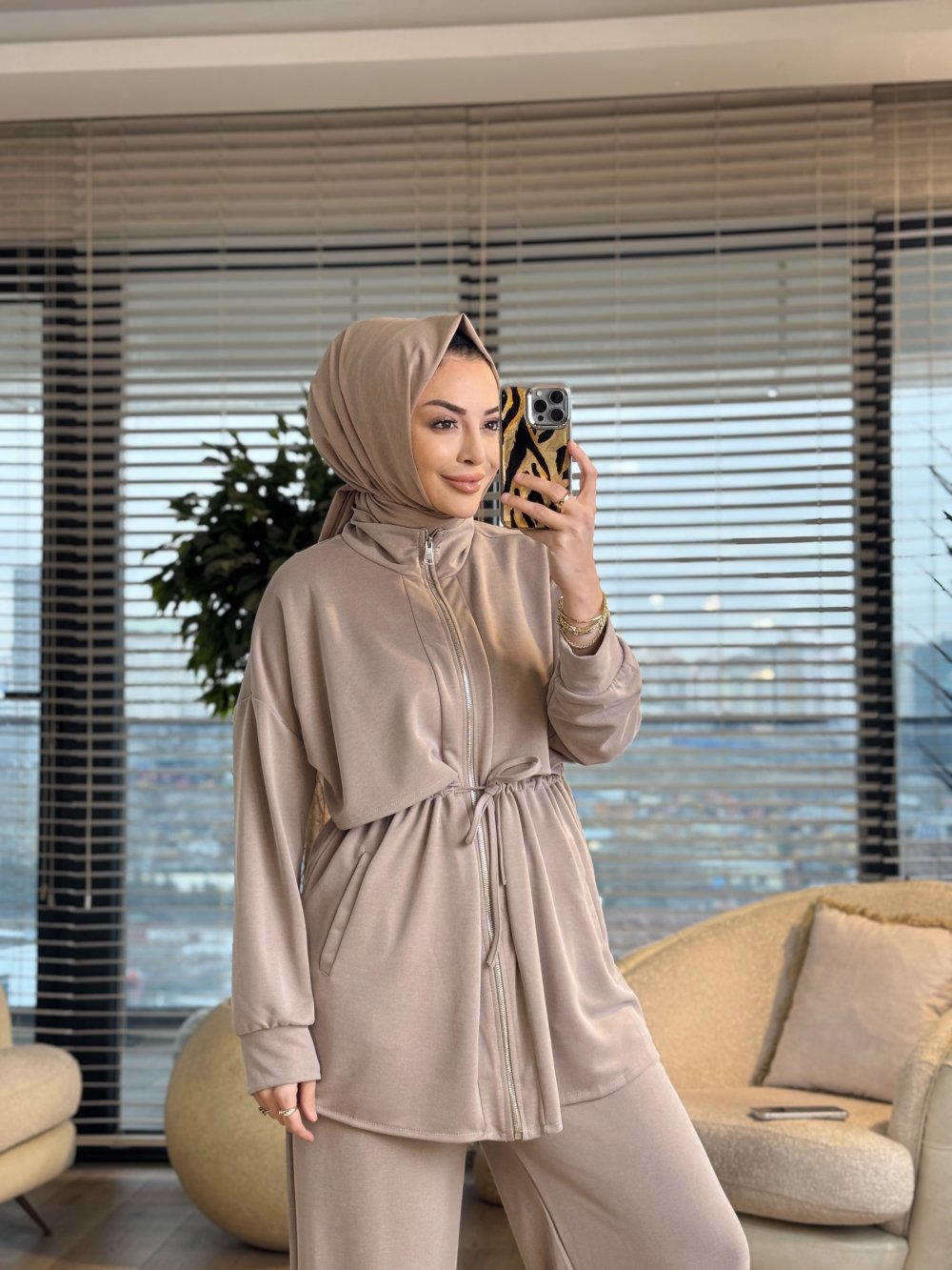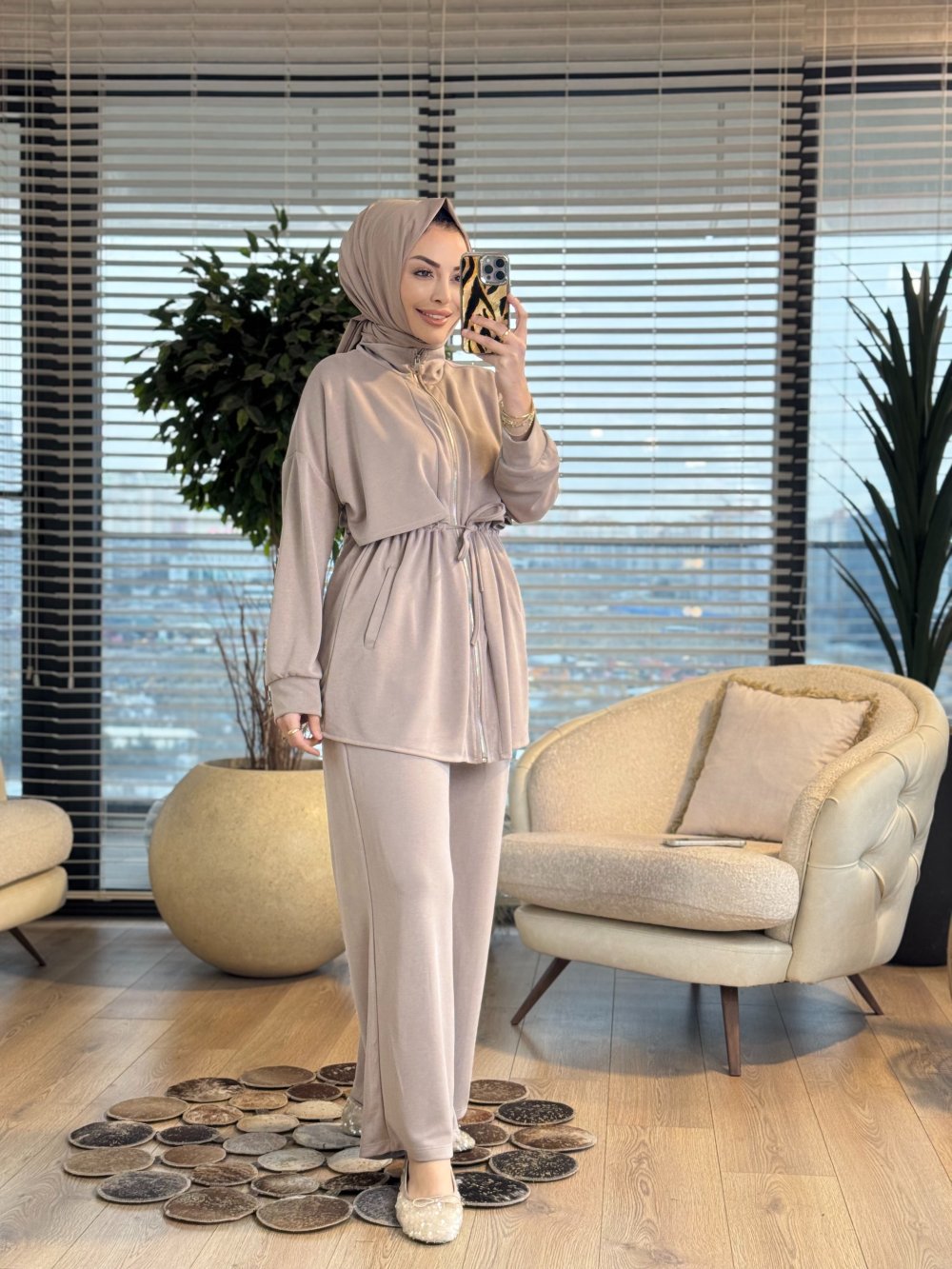 22839-5 Roba Parçalı Fermuarlı Takım Bej