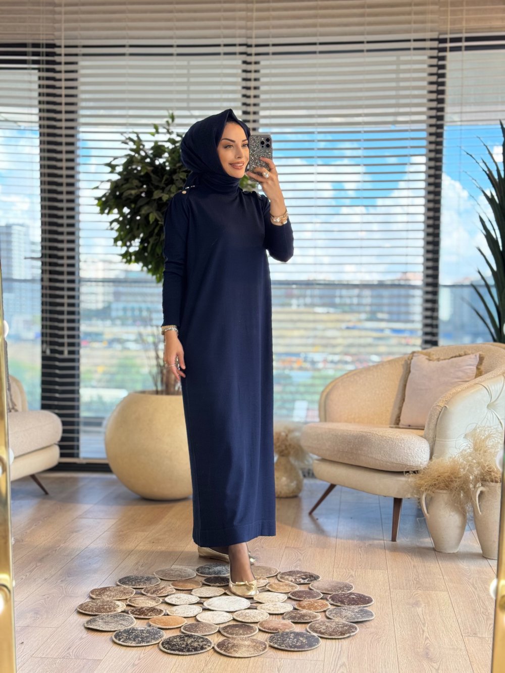 232 Omuzu Apoletli Triko Elbise Lacivert