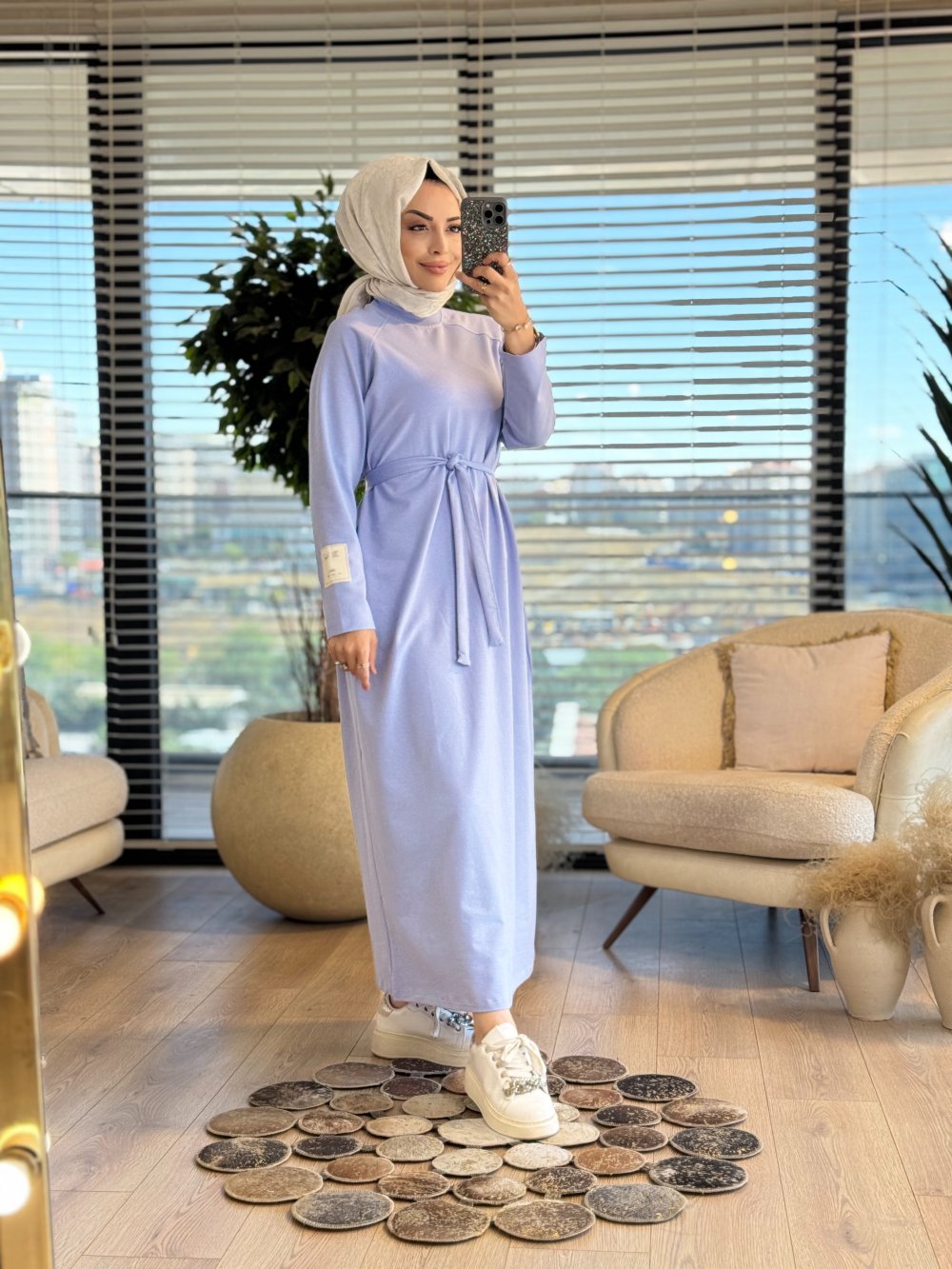 2400 Kolu Etiket Detaylı Elbise Bebe Mavi
