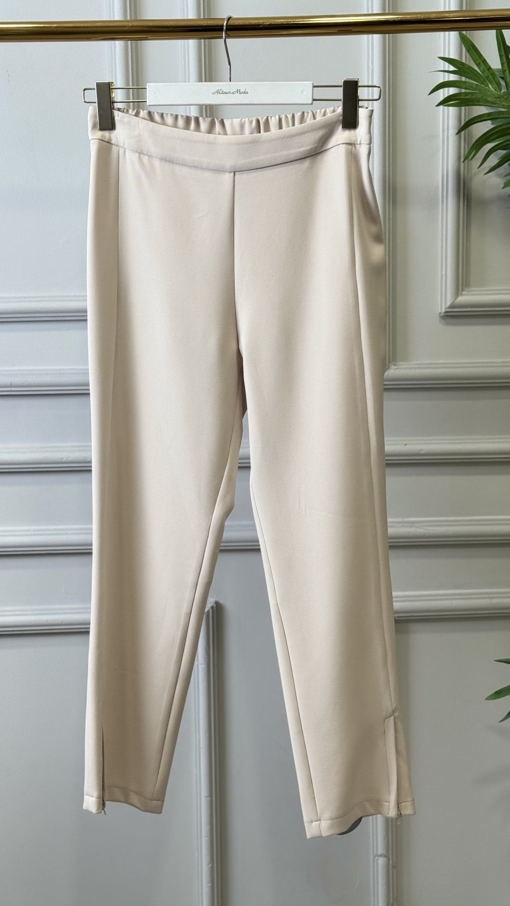 24016 Paçası Fermuarlı Pantolon Bej