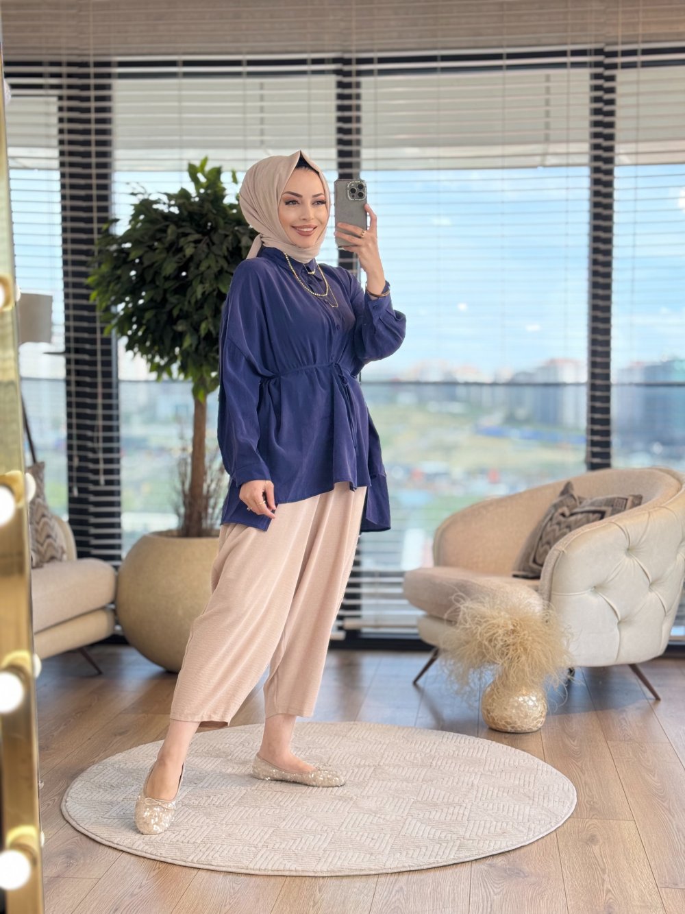 24300 Klasik Kuşaklı Gömlek Lacivert