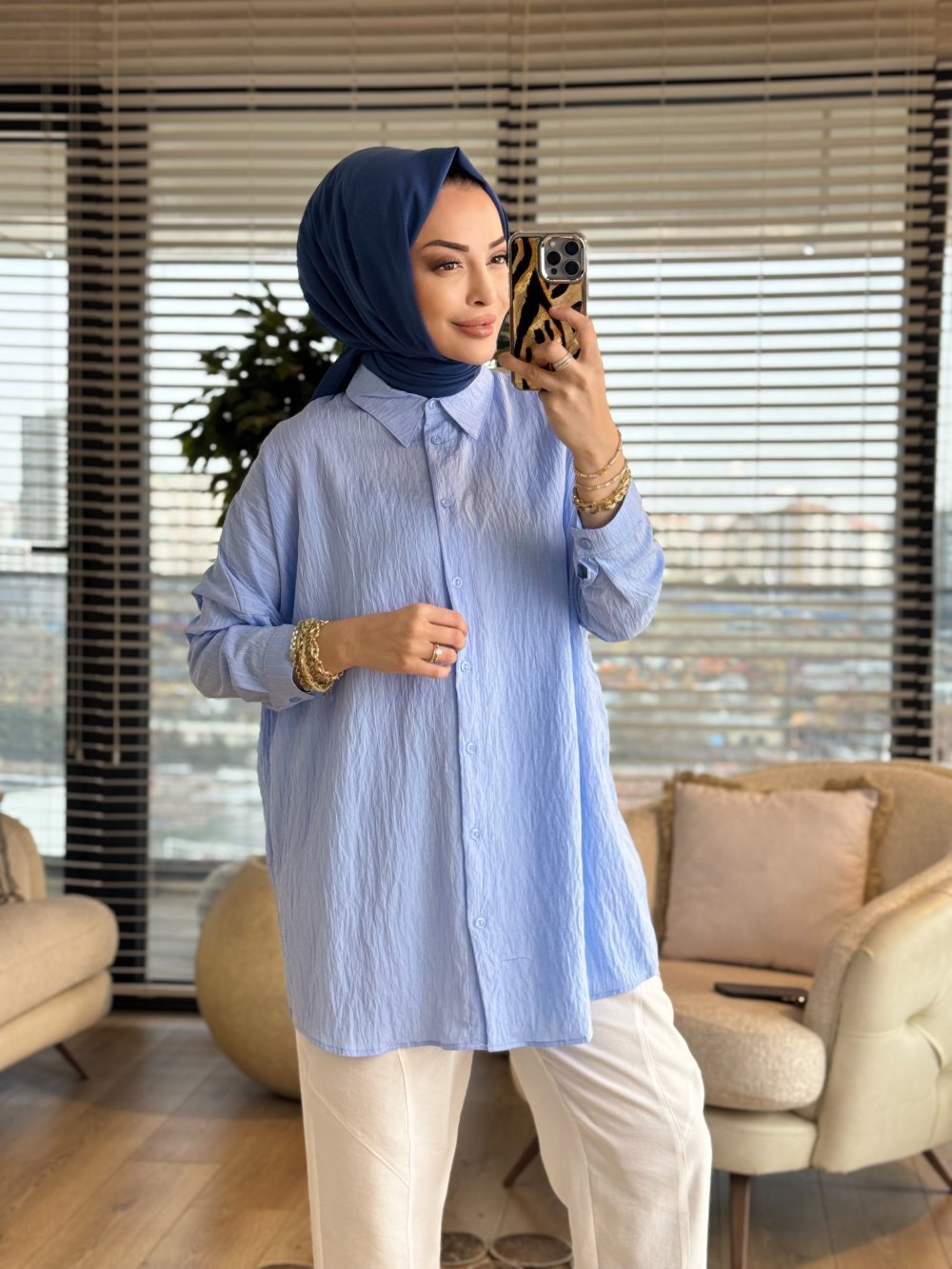 2490 Kendinden Desenli Gömlek Bebe Mavi