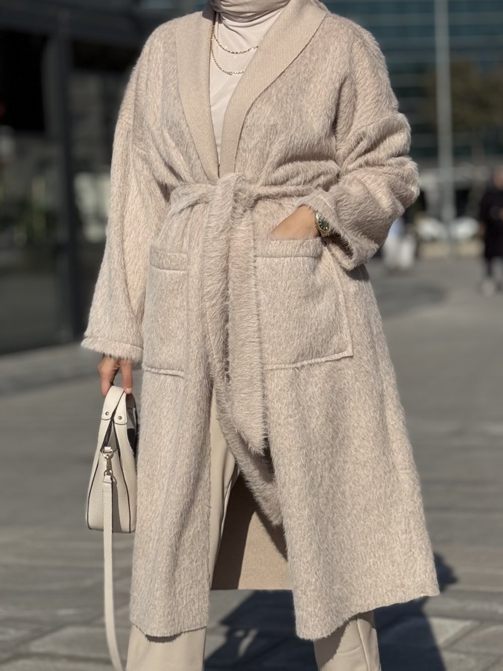 2498 Saçak Uzun Hırka Bej
