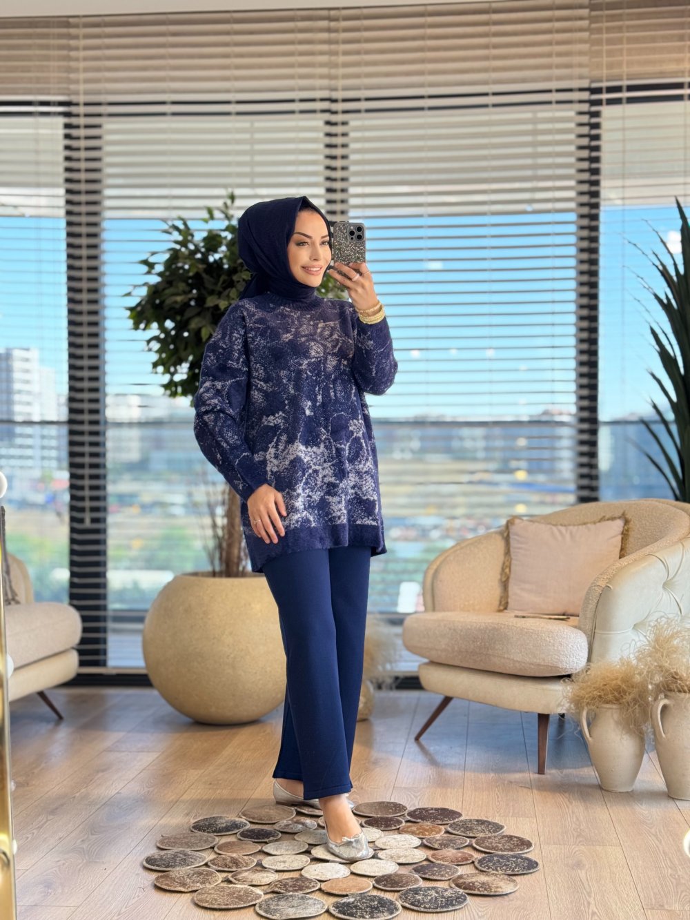 25001 Varak Baskılı Angora Tunik Lacivert