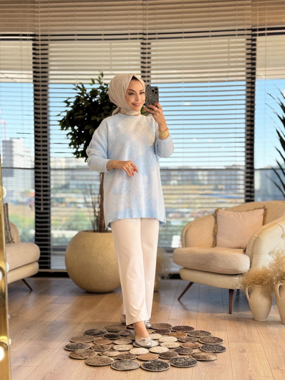 25001 Varak Baskılı Angora Tunik Mavi