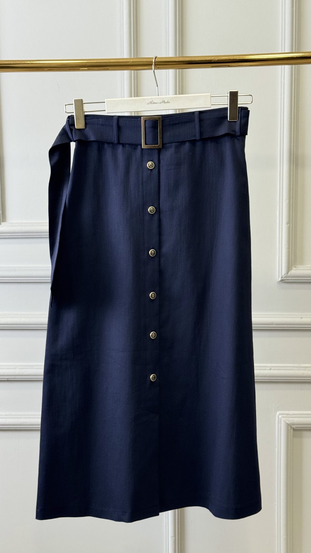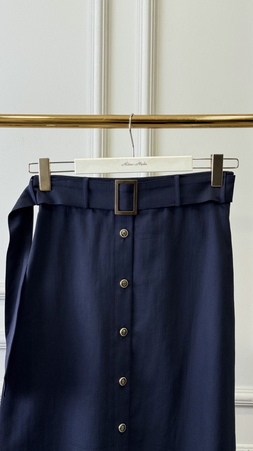 25004 Önü Düğmeli Kemerli Etek Lacivert