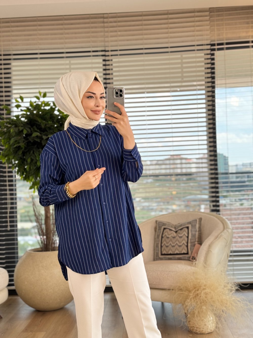 30645 Uzun Sıfır Yaka Tunik Ekru