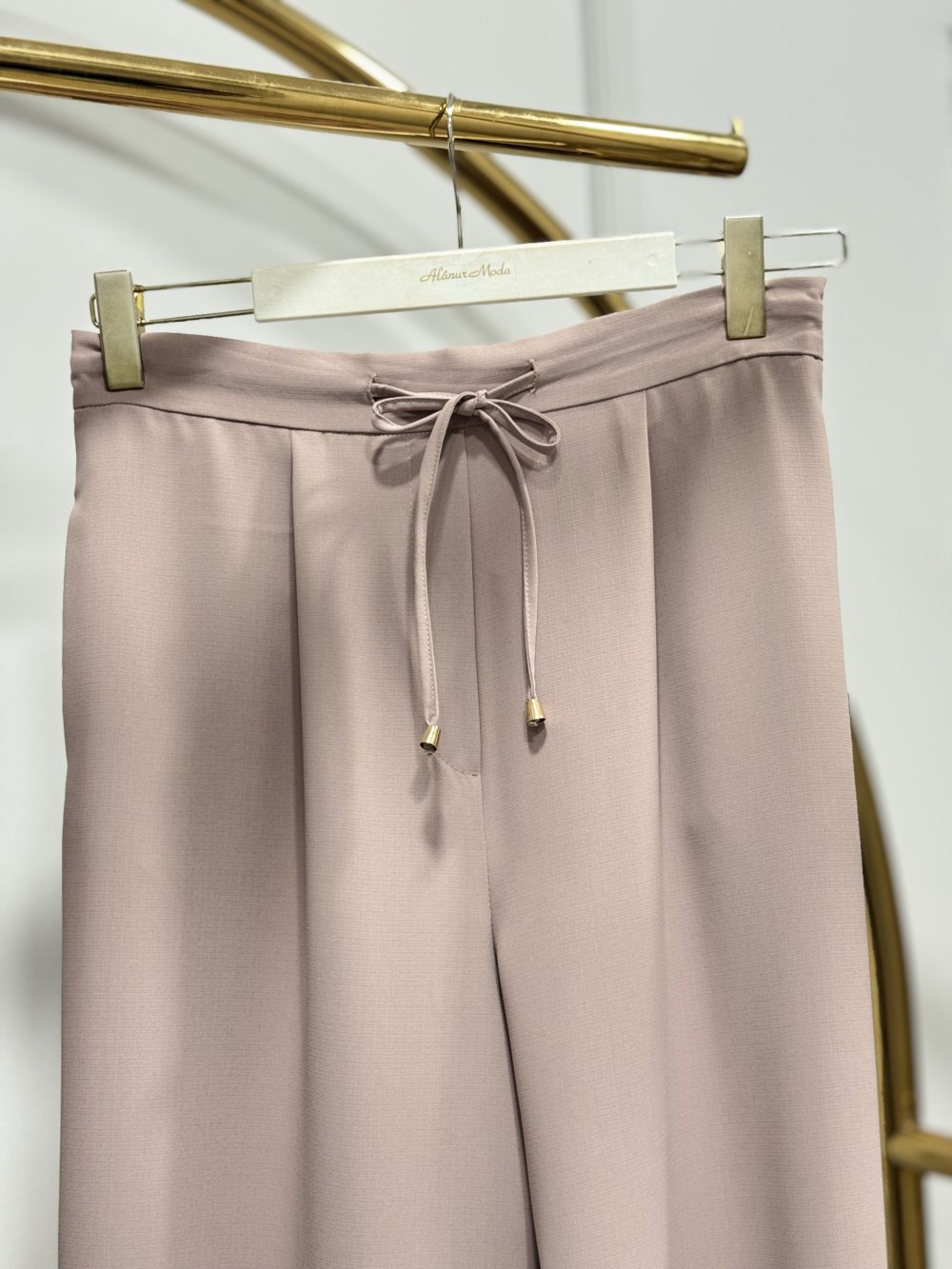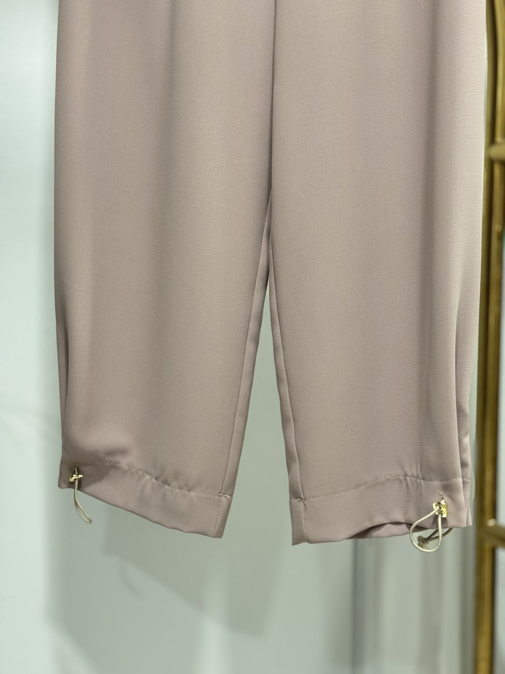 25092 Paçası Lastik Geçmeli Pantolon Bej