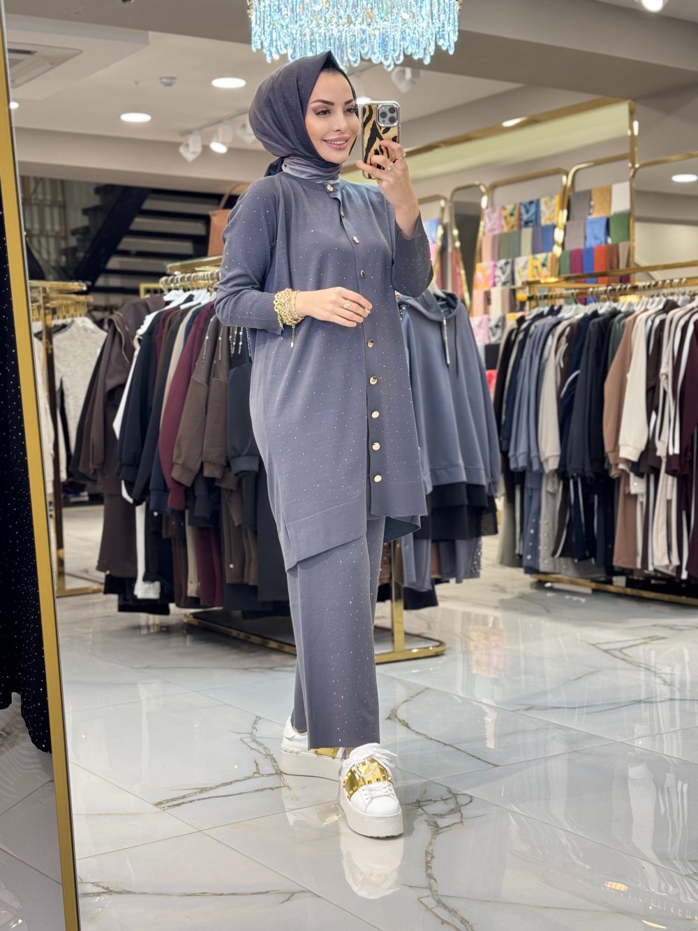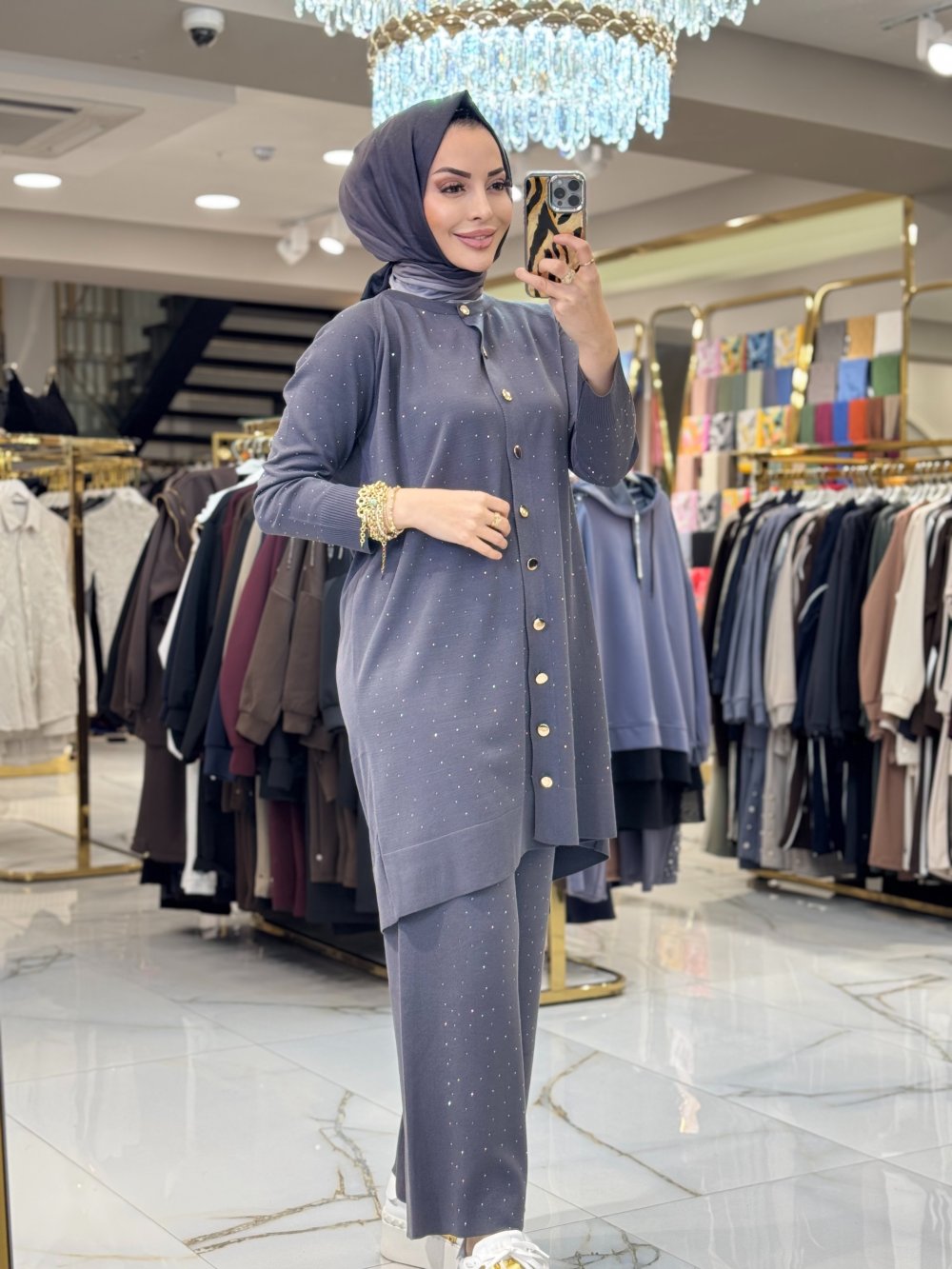 25195 Hırkalı Taşlı Takım Antrasit