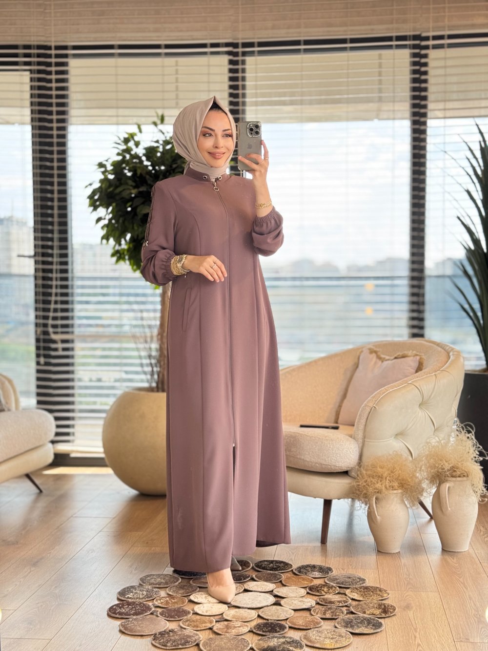 2535 Kolu Şeritli Pardesü Vizon