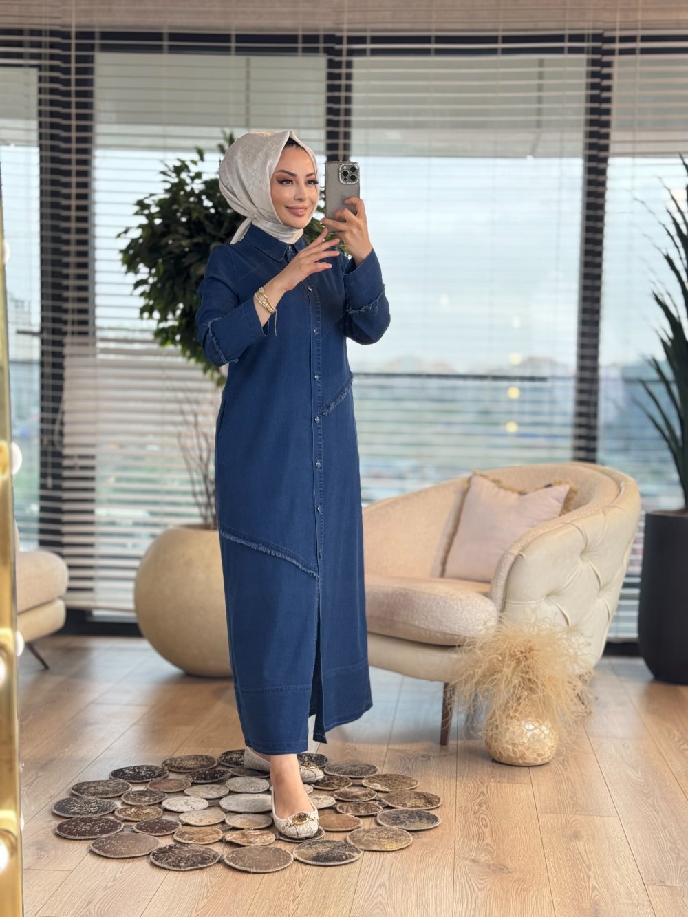 2544 Tencel Önü Parçalı Pardesü Mavi