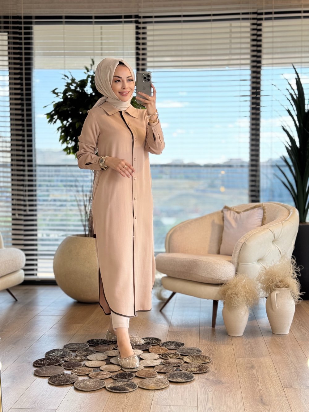 2546 Kombinli Tencel Şanel Pardesü Bej