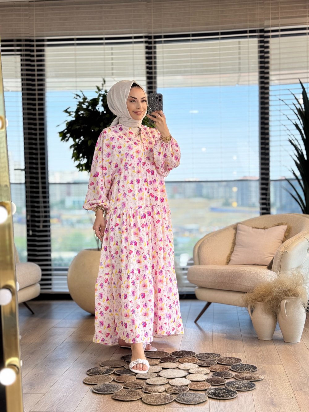 25EL577 Sardunya Çiçek Elbise Fuşya