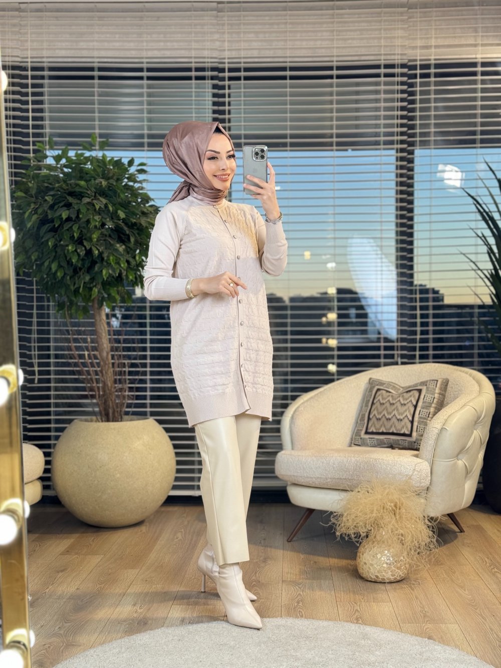 25K1111 Kazayağı Desen Hırka Bej